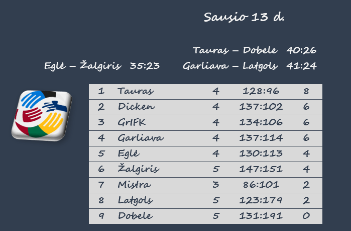 | Įmesti įvarčiai | 41 – Garliava (su Latgols) | 42 – Dicken (su Dobele) |