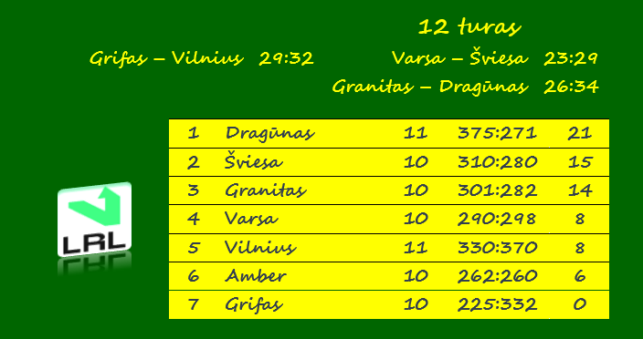 | Įvarčiai | 9 – Drevinskas, Vilnius (su Grifu) | 13 – Urvikis, Šviesa (su Amber), Drevinskas, Vilnius (su Amber) |