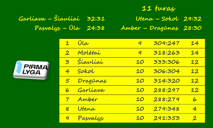 Po trumpos žiemos pertraukos į aikštes grįžo Lietuvos vyrų rankinio pirmosios lygos komandos. Ilgiau ilsisi tik buvę vienvaldžiai turnyro lyderiai „Molėtai“, kuriems 11-ajame ture žaisti nereikėjo. Tuo pasinaudojo Varėnos „Ūlos“ rankininkai, sekmadienį išvykoje nesunkiai nugalėję „Pasvalį“ 38:24 ir turnyro lentelėje paviję molėtiškius.