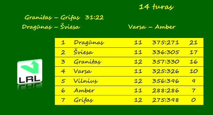 Lietuvos vyrų rankinio lygos 14-asis turas prasidėjo skirtingo lygio komandų rungtynėmis. Jose Kauno „Granitas“ be didelio vargo nugalėjo šį sezoną taškų dar neiškovojusį Panevėžio „Grifą“ 31:22 (15:10).