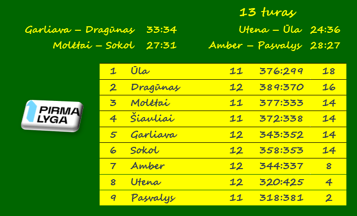 | Įvarčiai | 10 – Valentukevičius, Ūla (su Utena) | 16 – Butkus, Šiauliai (su Pasvaliu) |