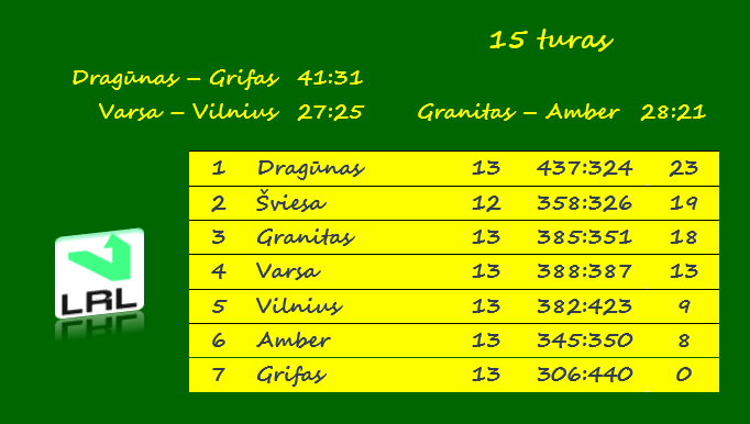 Kauno „Granitas“ – Vilniaus „Amber“ 28:21 (14:11).