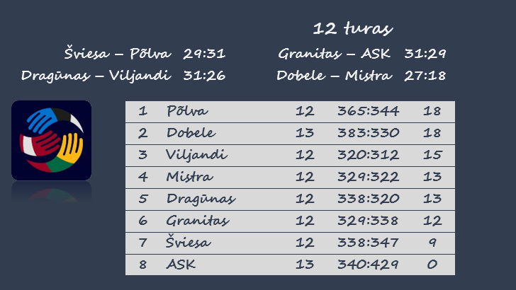 Dviejų paskutiniųjų turų rungtynės bus žaidžiamos kitą savaitgalį (kovo 2-3 dienomis). Visos trys Lietuvos komandos reguliarųjį sezoną pabaigs išvykose: „Dragūnas“ žais su „Serviti“ ir ASK, „Šviesa“ ir „Granitas“ keliaus pas „Mistra“ ir „Viljandi“.