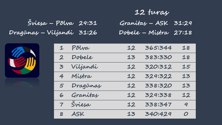 „Dragūnas“ nugalėjo „Viljandi“ rankininkus 31:26 (15:13), „Granitas“ įveikė autsaiderį Rygos ASK klubą 31:29 (16:13). Lietuvos čempionė Vilniaus „Šviesa“ pralaimėjo Baltijos lygos čempiono vardą ginančiam Pylvos „Serviti“ klubui 29:31 (11:16). Visos trys Lietuvos komandos žaidė namie.