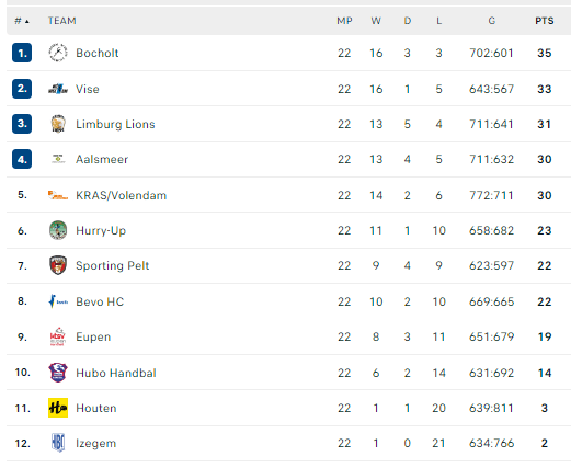 Galutinės lentelės lyderiai: „Achilles“ – 35, „Vise“ – 33, „Lions“ – 31, „Aalsmeer“ – 30, „Kras“ – 30.