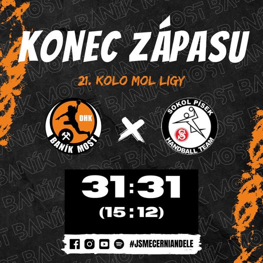 Mosto „Banik“ (Arciševskaja 0) – Piseko „Sokol“ 31:31 (15:12).