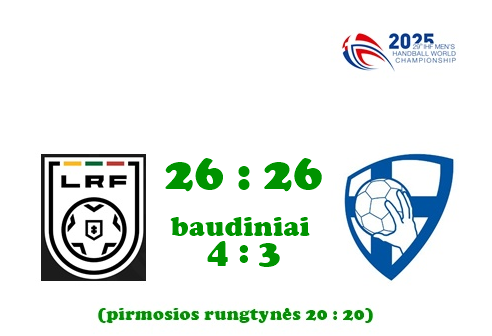 Prieš tris dienas Suomijoje pirmosios rungtynės baigėsi lygiosiomis 20:20. Alytuje po dviejų kėlinių rezultatas taip pat buvo lygus 26:26, todėl kelialapio į kitą etapą savininkai paaiškėjo per baudinyną. Prie septynių metrų linijos tvirčiau jautėsi lietuviai, laimėję papildomą rungtynių dalį 4:3.