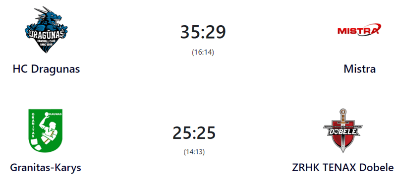 Taip pat namie žaidęs „Granitas“ rungtynes su Duobelės „Tenax“ baigė lygiosiomis 25:25 (14:13). Modestas Štarolis baudos metimu nuo devynių metrų linijos rezultatą išlygino jau po finalo sirenos.
