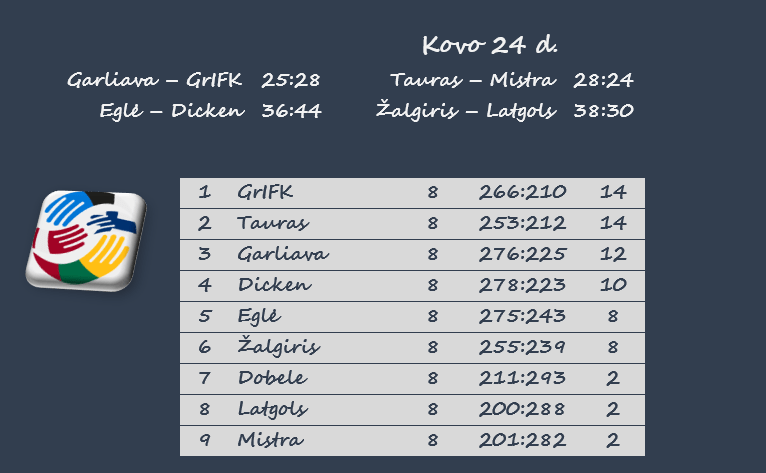 Vilniaus „Tauras“ – Rasiku „Mistra“ 28:24 (14:10).