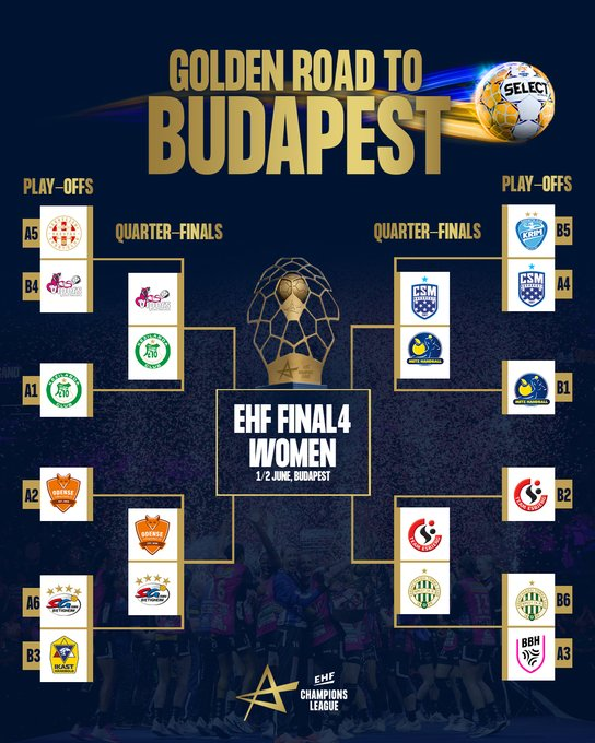 Ketvirtfinalyje balandžio 27-gegužės 5 dienomis susitiks Djoro „Audi“ – „Vipers“, „Metz“ – Bukarešto CSM, „Odense“ – „Bietigheim“ ir „Esbjerg“ – „Ferencvaros“.