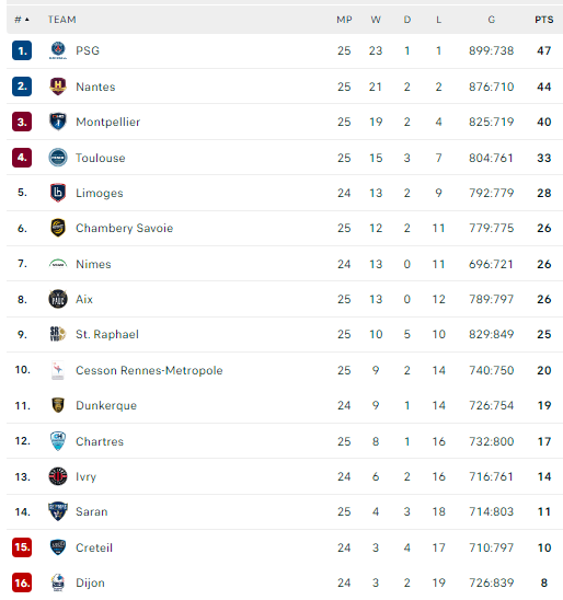 Pirmauja: PSG – 47, „Nantes“ – 44, „Montpellier“ – 40, … „Aix“ – 26.