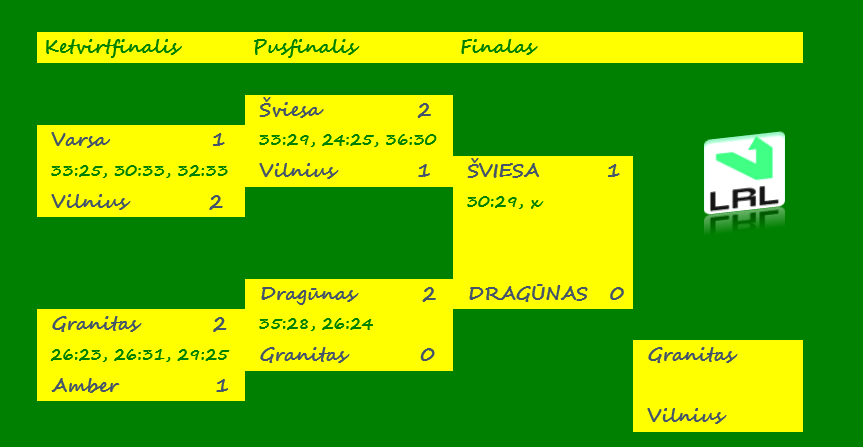 Mačo dėl trečiosios vietos pirmosios rungtynės vyks ketvirtadienį. Dėl bronzos apdovanojimų kovos Kauno „Granitas“ ir „Vilnius“.