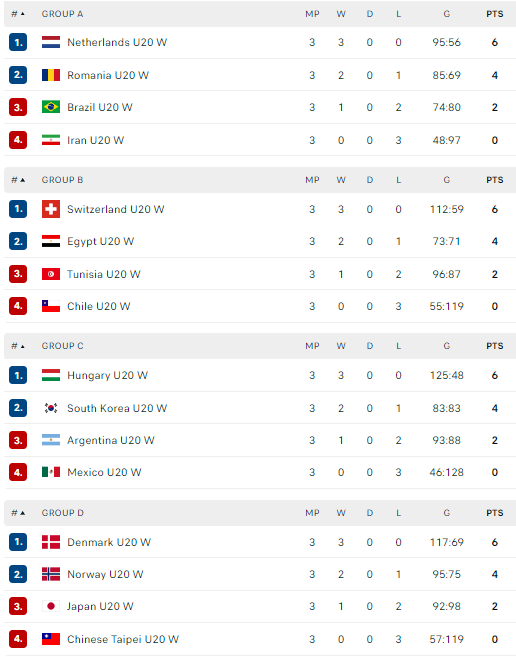 Korėjietės ir egiptietės kelialapius iškovojo grupėse, kuriose žaidė tik po vieną Europos komandą. Tuo tarpu kinės sugebėjo aplenkti europietes – Čekijos merginas.