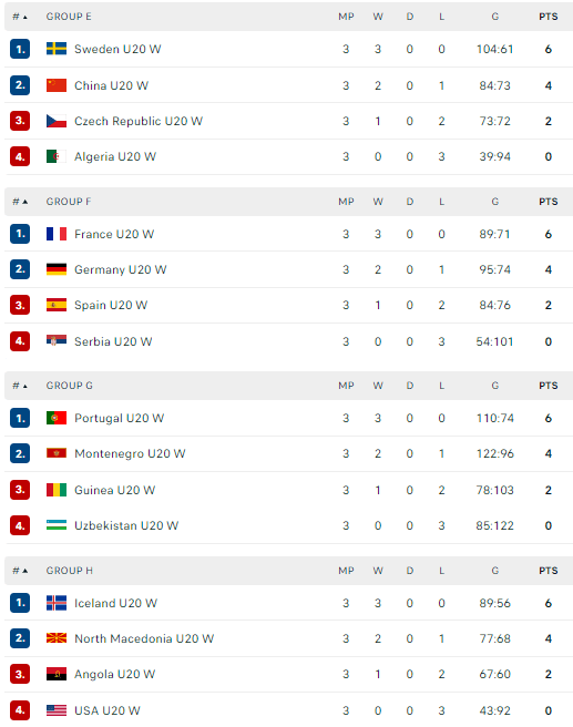Pirmajame etape didelių netikėtumų nebuvo, o į antrąjį grupių etapą pateko net 13 Europos komandų. Tai – Nyderlandai, Rumunija, Šveicarija, Vengrija, Danija, Norvegija, Švedija, Prancūzija, Vokietija, Portugalija, Juodkalnija, Islandija ir Šiaurės Makedonija. Kitiems žemynams antrajame etape atstovauja tik Korėja, Kinija ir Egiptas.