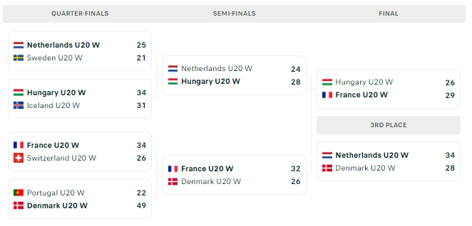 Bronzos medalius iškovojo Nyderlandų rankininkės, mažajame finale įveikusios Danijos komandą 34:28 (18:13).