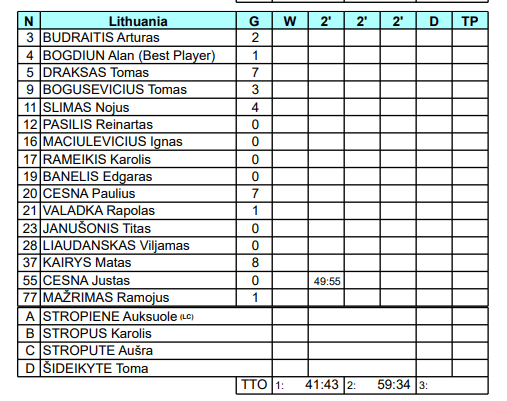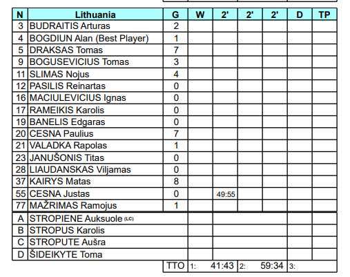 Lietuva – Turkija 34:35 (17:19). M.Kairys 8, Drakšas 7, P.Čėsna 7, Slimas 4, Boguševičius 3, Budraitis 2, Bogdiunas 1, Valadka 1, Mažrimas 1 / Herseklioglu 12, Gedikli 8.