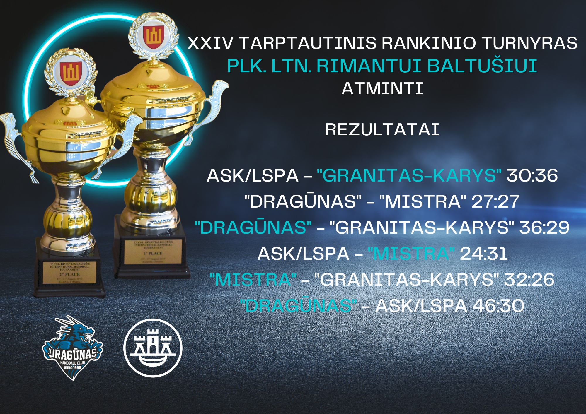Lentelė: „Dragūnas“ – 5, „Mistra“ – 5, „Granitas“ – 2, ASK – 0.