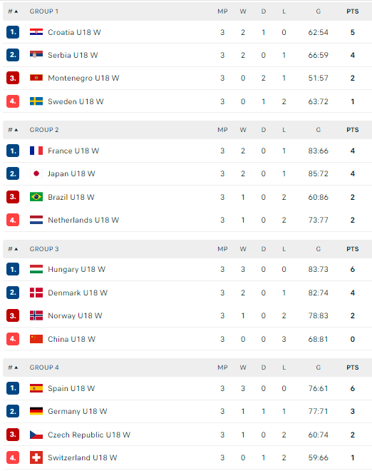 Antrojo etapo grupėse po tris pergales iškovojo tik Vengrijos ir Ispanijos merginos.