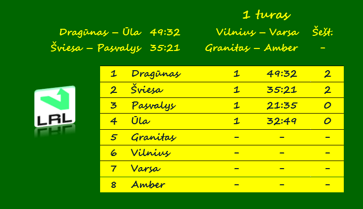 Gera pradžia debiutantams didelių dividendų nedavė. Abejas trečiadienį vykusias pirmojo turo rungtynes laimėjo namie žaidę favoritai. Čempionės vardą ginanti Vilniaus „Šviesa“ įveikė Pasvalio „Pieno Žvaigždes“ 35:21 (17:11), prieš kelias dienas Lietuvos supertaurę iškovojęs Klaipėdos „Dragūnas“ – Varėnos „Ūlą“ 49:32 (25:14).