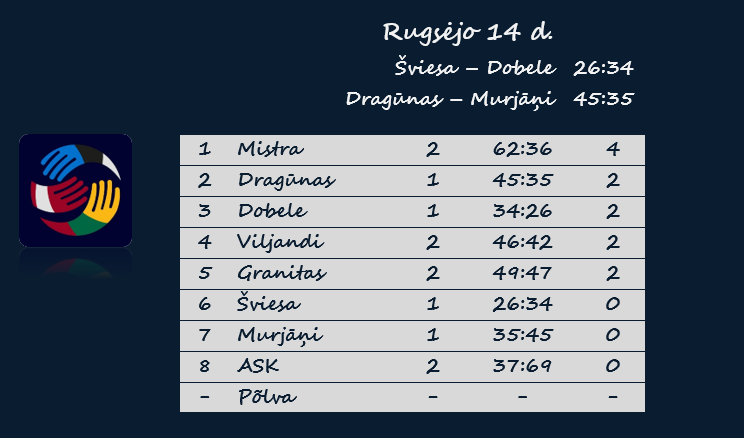 Šeštadienį lietuviai ir latviai pasidalijo po pergalę. „Dragūnas“ nugalėjo „Murjāņi“ rankininkus 45:35 (22:21), „Šviesa“ pralaimėjo „Tenax“ komandai 26:34.