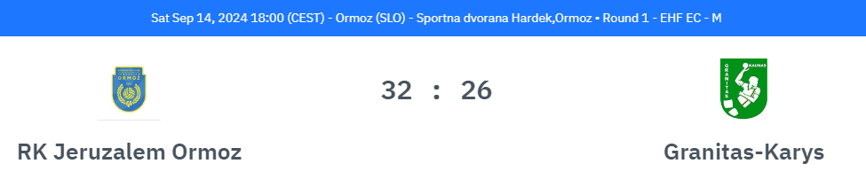 Pirmosios ir paskutinės minutės buvo didžiausia Kauno „Granito“ rankininkų problema per pirmąsias Europos taurės pirmojo etapo rungtynes. Jose kauniečiai išvykoje 26:32 (11:13) nusileido Ormožo „Jeruzalem“ ekipai iš Slovėnijos.