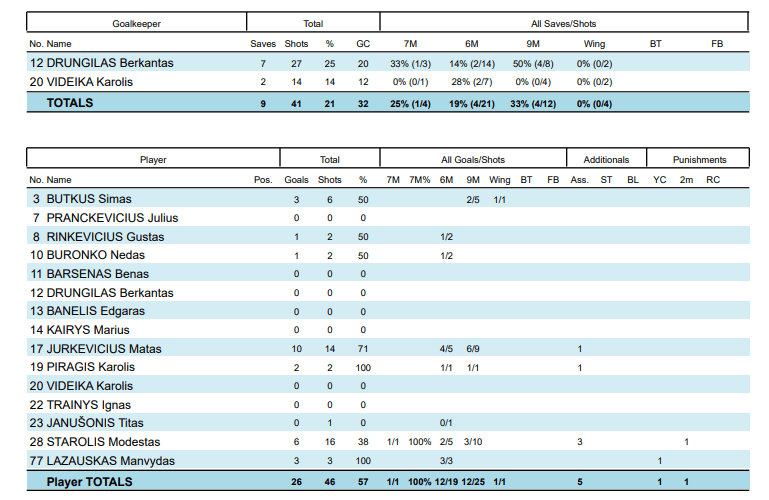 Kauno komandoje rezultatyviausiai žaidė 10 įvarčių įmetęs Matas Jurevičius.