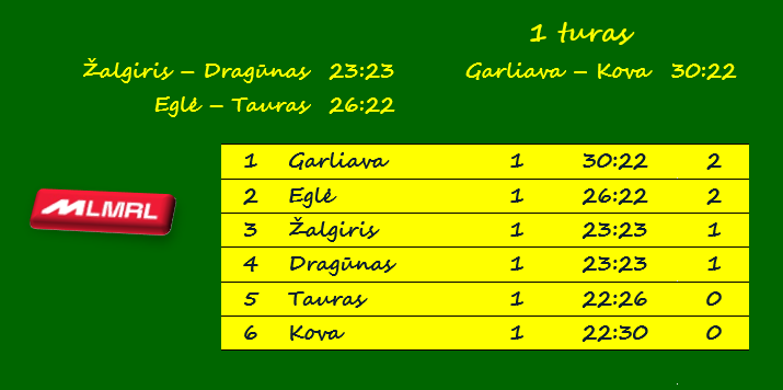Trečiadienį baigėsi Lietuvos moterų rankinio lygos pirmasis turas. Paskutinėse rungtynėse čempionės vardą ginanti „Garliava“ namie įtikinamai nugalėjo Panevėžio „Kovą“ 30:22 (14:7).