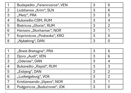 Vis dėlto savaitgalį dėmesio centre buvo kitos rungtynės. Sirgalių žvilgsniai krypo į dvi Prancūzijos ir Danijos komandų dvikovas. Prancūzės šventė dvigubą pergalę, ir abejas rungtynes laimėjo vieno įvarčio skirtumu. „Brest-Bretagne“ savo aikštėje palaužė „Esbjerg“ rankininkes 33:32, „Metz“ išvykoje nuliūdino „Nykøbing“ komandą 28:27.