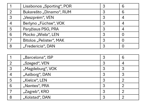 B grupės vienvaldė lyderė yra 6 taškus iškovojusi „Barcelona“. Į antrąją vietą pakilo 4 taškus surinkęs „Szeged“, kuris ketvirtadienį namie po atkaklios kovos palaužė „Nantes“ ekipą 33:32.