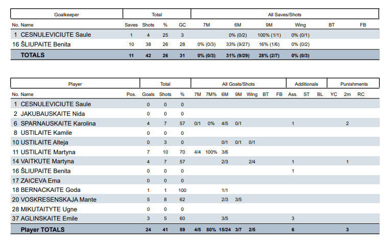 „Garliava“: M.Ustilaitė 7, Voskresenskaja 5, Sparnauskaitė 4, Vaitkutė 4, Aglinskaitė 3, Bernackaitė 1.