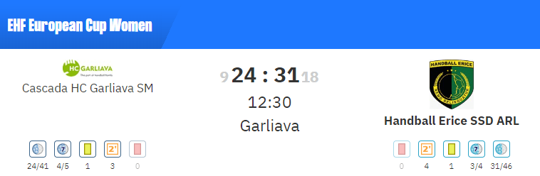 Šeštadienį Garliavos sporto centre komandos lygiai žaidė tik rungtynių pradžioje. 6-ąją min. Garliavos komanda pirmavo 3:2, bet paskui viešnios įmetė septynis įvarčius iš eilės ir pradėjo sparčiai tolti (9:3). „Garliava“ įvarčių badą nutraukė tik 18-ąją min., bet „Erice“ ekipa jau buvo įsibėgėjusi ir dar pirmojo kėlinio pabaigoje jos persvara tapo dviženklė 17:7.