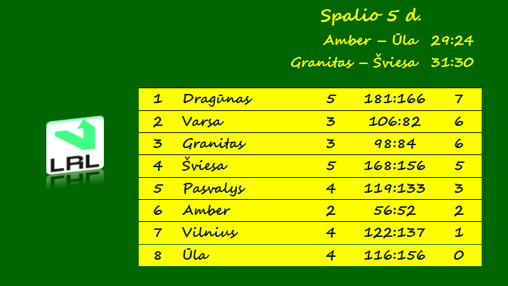 | Įmesti įvarčiai | 31 – Granitas (su Šviesa) | 49 – Dragūnas (su Ūla) |