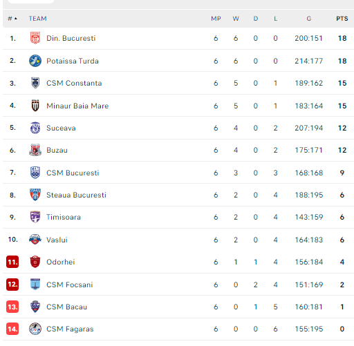 Pirmauja: „Dinamo“, „Potaissa“ – po 18, „Constanța“, „Minaur“ – po 15, „Suceava“, „Buzău“ – po 12, … „Bacău“ – 1.