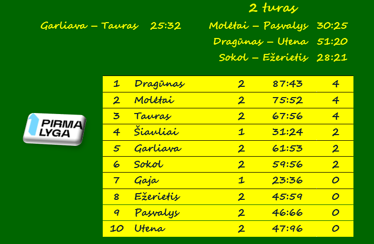 Klaipėdos „Dragūnas-2“ – „Utena“ 51:20 (25:7). Mažrimas 9, Urbonas 8, Dulkys 6, Biknius 6, Šlinkšis 5, Kubiliūnas 5 / Sinkevičius 6.