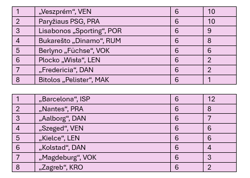 „Kielce“ – „Aalborg“ 28:35 (12:18). Moryto 5, Maqueda 5 / Arnoldsenas 9, Thurinas 7. 4200 žr.