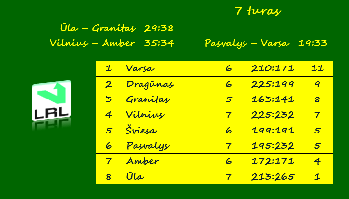 Kito turo rungtynės bus žaidžiamos lapkričio 13 dieną. „Varsa“ priims „Granitą“, „Šviesa“ – „Amber“, „Ūla“ – „Dragūną“.