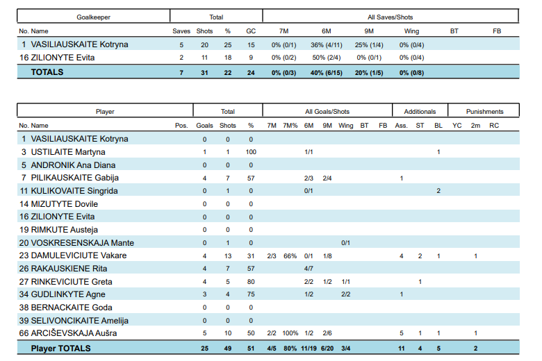 Lietuva: Arciševskaja 5, Pilikauskaitė 4, Damulevičiūtė 4, Rakauskienė 4, Rinkevičiūtė 4, Gudlinkytė 3, M.Ustilaitė 1.