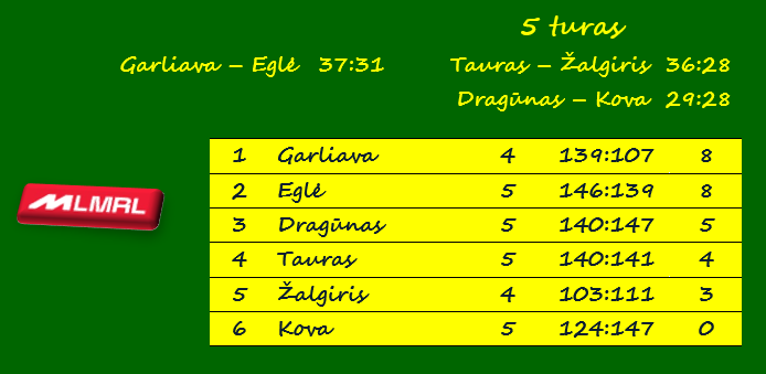 | Skirtumas | 8 – Tauras (su Žalgiriu) | 10 – Garliava (su Tauru) |