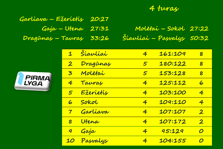 „Šiauliai“ per ketverias rungtynes iškovojo 8 taškus. Po 8 taškus taip pat turi Klaipėdos „Dragūno“ dubleriai ir „Molėtai“, bet šios komandos jau žaidė po penkerias rungtynes.