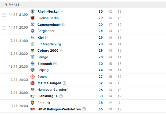 Aštuntfinalyje krito keli Vokietijos rankinio milžinai. Šio barjero neįveikė ir abu šį sezoną Čempionų lygoje žaidžiantys Vokietijos klubai Berlyno „Füchse“ bei „Magdeburg“.