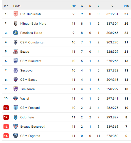 Pirmauja: „Dinamo“ – 27, „Minaur“ – 25, „Potaissa“ – 24, „Constanța“, „Buzău“ – po 21, … „Bacău“ – 13.