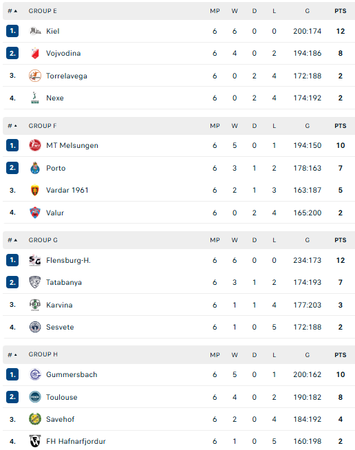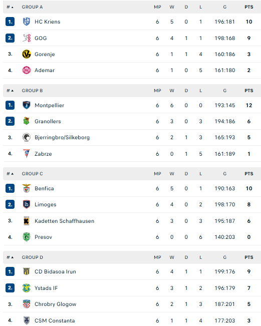 Vyrų rankinio Europos lygoje, antrajame pagal rangą žemyno turnyre, baigėsi pirmojo etapo grupių varžybos ir paaiškėjo 16 komandų, kurios žais antrajame etape.