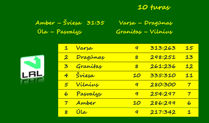 Kitos dešimtojo turo rungtynės bus žaidžiamos šeštadienį.