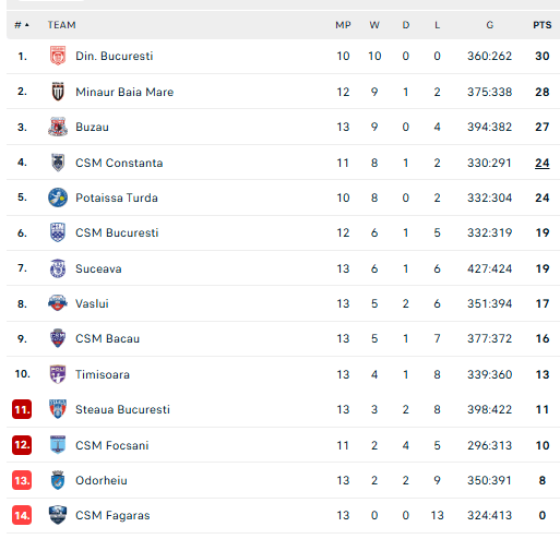 Pirmauja: „Dinamo“ – 30, „Minaur“ – 28, „Buzău“ – 27, „Constanța“, „Potaissa“ – po 24, … „Bacău“ – 16.