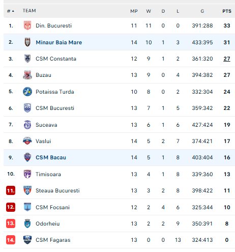 Pirmauja: „Dinamo“ – 33, „Minaur“ – 31, „Constanța“, „Buzău“ – po 27, … „Bacău“ – 16.
