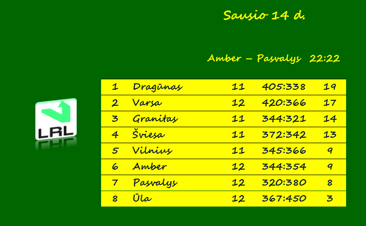 Vilniaus „Amber“ – Pasvalio „Pieno Žvaigždės“ 22:22 (10:12).