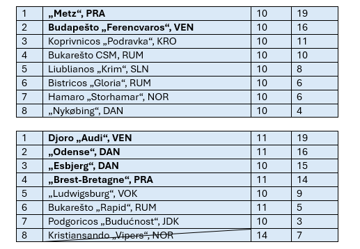 A grupės lyderės poziciją sustiprino „Metz“ komanda, išvykoje nugalėjusi „Ferencvaros“ rankininkes 26:23. „Metz“, kuri per 10 rungtynių iškovojo 19 taškų, dar labiau įsitvirtino pirmojoje vietoje ir jau gali būti rami, kad gaus tiesioginį kelialapį į ketvirtfinalį. Tiesa, „Ferencvaros“ (16 taškų) taip pat labai tvirtai jaučiasi antrojoje vietoje, kuri irgi užtikrina tiesioginį bilietą į ketvirtfinalį.