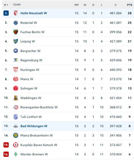 Pirmauja: „Union“ – 28, „Rodertal“ – 35, „Füchse“ – 22, … „Vipers“ – 8.
