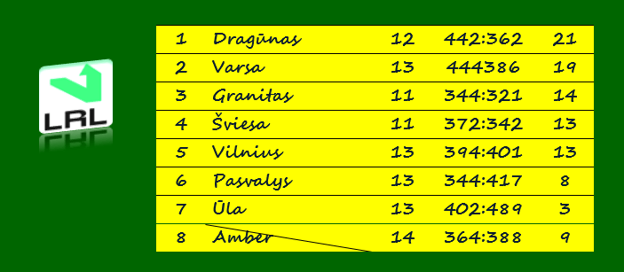 „Amber“ komanda šį sezoną Lietuvos lygoje žaidė 13 rungtynių, per jas iškovojo 9 taškus ir tarp aštuonių ekipų užėmė šeštąją vietą.