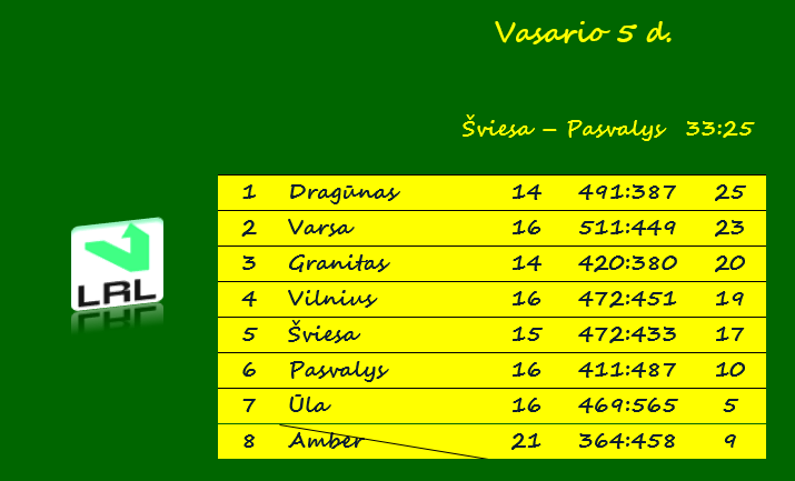 Vilniaus „Šviesa“ – Pasvalio „Pieno Žvaigždės“ 33:25 (17:10).